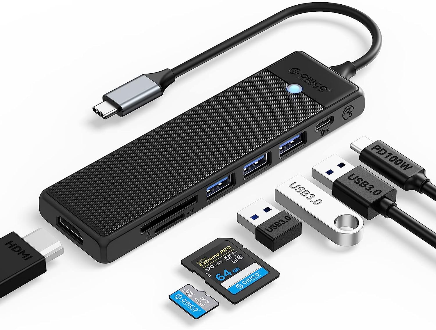 Hub Multiconexões Tipo-C 7 em 1 ORICO